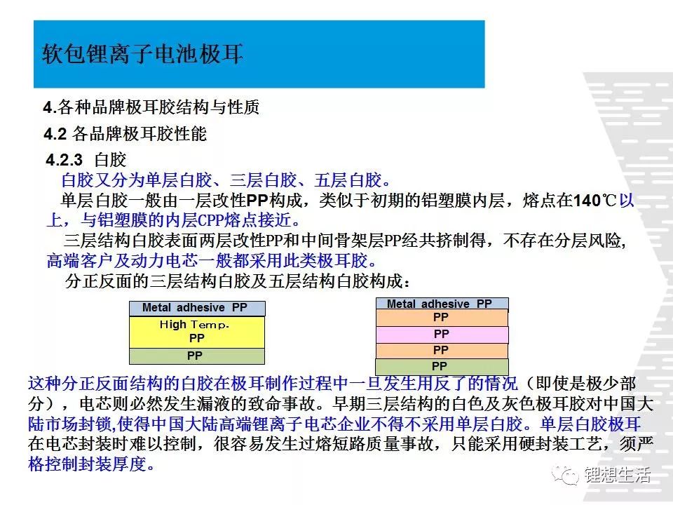 黃膠極耳有分層的危險(xiǎn)。但黃膠極耳的封裝條件比白膠容易調(diào)節(jié)。前期日本極耳膠供應(yīng)商也提到黃膠的不足,表現(xiàn)為3點(diǎn):