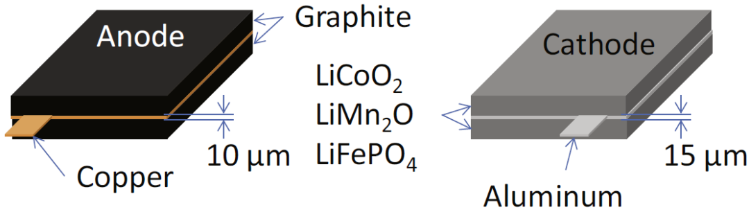 圖1 鋰離子電池正負(fù)極極片示意圖